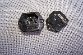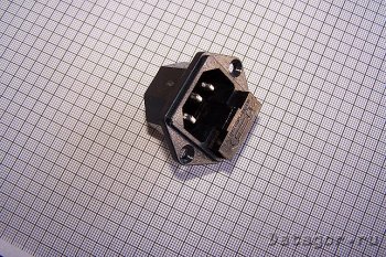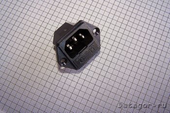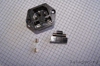 Гнездо для БП (250V, 10А) с пином заземления, с держателем предохранителя, "компьютерный" формат.