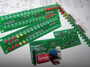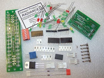 светодиоды 3-х цветов, все разъёмы и печатные платы. Это второй кит из серии датагорских LED-индикаторов уровня сигнала, изготовлен на базе микроконтроллера