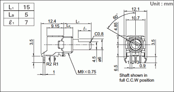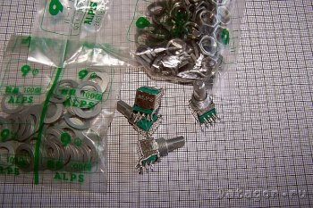 Радиодетали почтой » Триммеры, потенциометры, ручки » Потенциометры » Потенциометр ALPS RK09L50, 50 кОм, Audio type, сдвоенный, для громкости